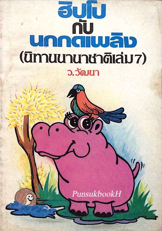 ฮิปโปกับนกกดเพลิง นิทานนานาชาติเล่ม 7 โดย ว.วัฒนา สำนักพิมพ์อักษรวัฒนา พ.ศ. ๒๕๒๖ มี ๙๖ หน้า
